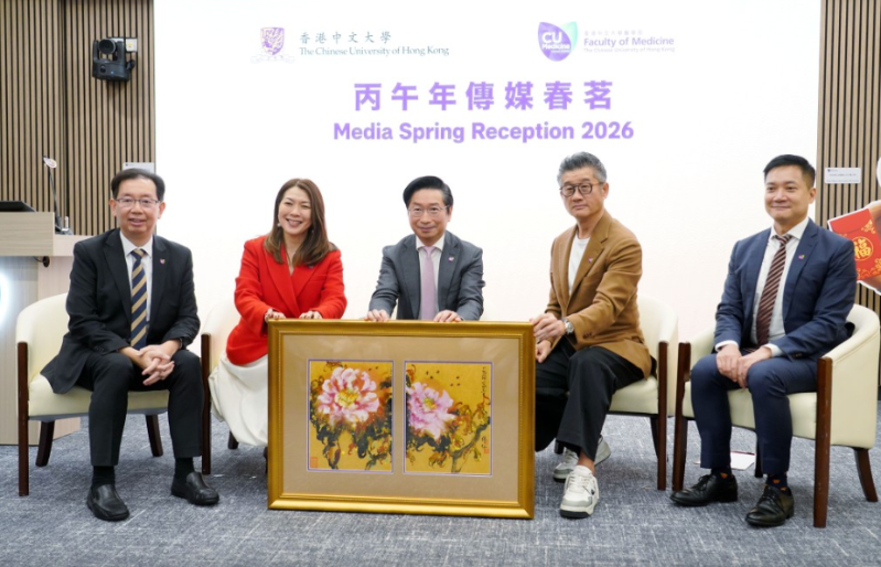 ▲左起︰中大医学院副院长(学生事务)吴兆文、副院长(研究)黄秀娟、院长赵伟仁、副院长(科研及创业)莫树锦及副院长(教育)黄仰山今日出席传媒春茗。叶伟豪摄。